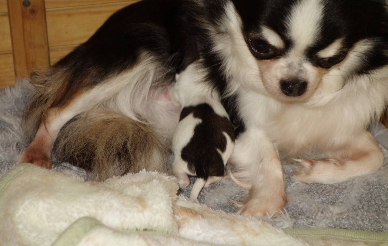 【マグチワ】まゆベビー 1か月齢 チワワのまゆのベビーも1か月齢になりました。しっかりしてきてかわいい顔になってきましたよ。眠るときにはまゆママにべったり抱き着いて寝ていますが、目が覚めると産箱の中を歩き回ったり、箱から出…