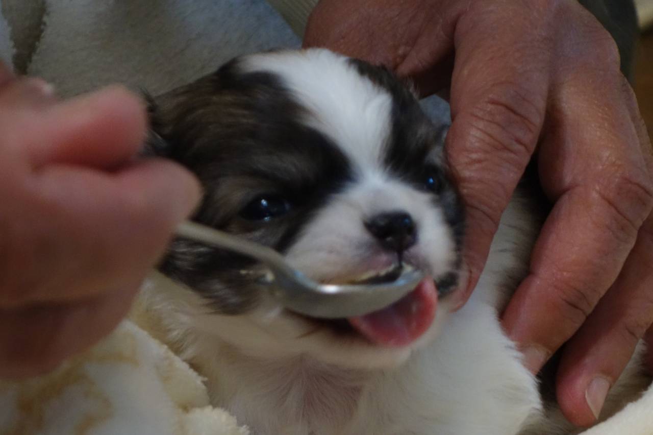 【マグチワ】まゆベビー チワワのベビー今日で3日目、夜の授乳時の体重は123g、3日で約20グラム以上の増加、ミルクの飲み具合もだいぶ力強くなってきています。とりあえず第一ハードルの3日は無事経過してくれました。ゴールデン…