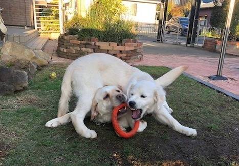マグゴル6期生、焼津のくるみちゃんは6か月齢に入って身体もしっかりしてきました。オーナーのI様は2年前に見学にいらした時は先住犬のラブ君がまだ1歳3カ月ということで2,3歳ぐらいのタイミングでというお考えの方でした。実は昨年の5期生の時も順番が来ていたんですが、ラブ君のトレーナーさんと相談してもう少し待ちましょうということで、今回念願かなって2年越しのお迎えとなりました。くるみちゃんは元気でおてんば娘だそうです。先住犬のラブ君と性格も似ていてとても陽気。一緒に楽しく遊んでいるそうです。先住犬のことをよく見て、専門家のトレーナーさんともよく相談して慎重に判断されてきた賜物ですね。「わんこファースト」言葉で言うのは簡単ですが、十分な準備・丁寧な対応が必須です。それと、やっぱり”縁”ですね。