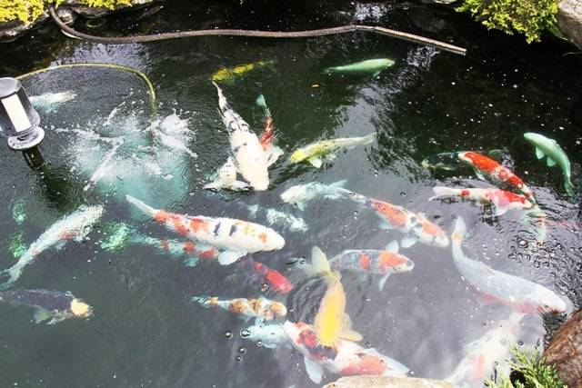 気温の上昇とともに池の水温も上がってきてみんなしっかり冬眠から開けて元気に泳ぎ始めました。先週の土曜日の夕方から春の消毒を始めたので水が青みがかっています。明日でちょうど1週間経過、その後少しずつ水を入れ替えながら餌付け開始です。いよいよ錦鯉もキャンプインの時期になってきました。