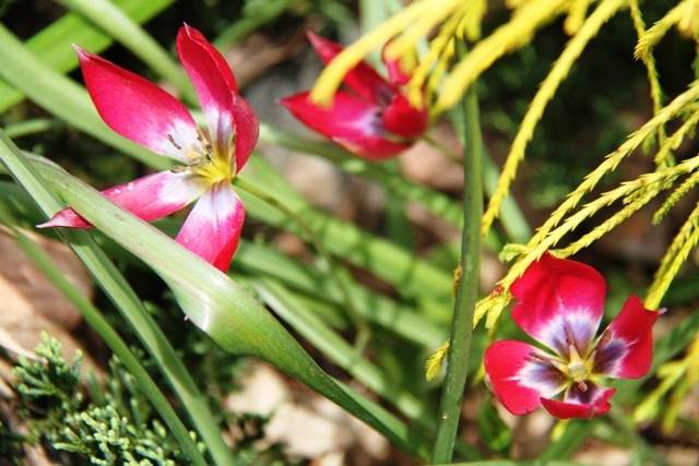 いきなりの夏日にびっくりして、ホスタ(ギボウシ)がいきなり急成長、まさにホスタダンス。花後の世話をサボってしまったシャクナゲも何とか咲いてくれました。去年掘り起こして植え替えした原種チューリップ、群植した場所は今のところ3輪開花しました。