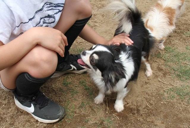 いつも遊びに来てくれる近所のNさん一家、今日もお子さんたちと来てくれました。ちょうど女の子のトイレ出し最中、6頭の大型犬が一斉にドッグランにいる様子は一般の方には迫力があるようで、びっくりしていました。それでも、子供たちは柵越しにモカやシェリー&マノンたちを撫でてくれましたよ。英国Gの後はマグチワたちの番、いつものようにドッグランに入って楽しそうに触れ合っていました。