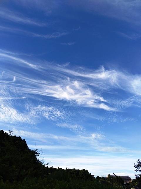 温暖化の影響なのか今年も梅雨らしい雨の降り方は少ない感じでしたてね。これが現代の梅雨になっているのかな?本格的な猛暑かな?と覚悟していましたが、今朝は気温は高いけど比較的湿度が高くはなかったようですね。雲が高くて画像だけ見ていると秋のような雲画像でした。本格的な入道雲はこれからですね。小学校一年生の頃夏休みの宿題でロール状の障子紙に描いていったのを思い出します。入道雲が印象に残っていたので描いたらうまくいかず、母が手伝ってくれたんですが上手くて先生に褒められたんです。今考えると「バレバレ」でしたね。