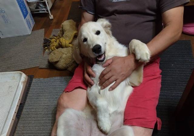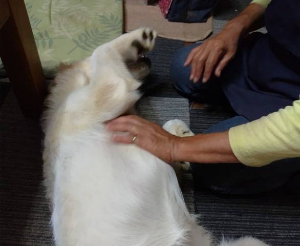 凛ちゃん、昨夜も最後のトイレ出しの後はリビングでイケゴルとのワンプロ、ボール&ロープ遊び、最後は服従訓練でクールダウン。最近慣れてきたせいか、凜はこの体制なのにずうっと尻尾フリフリ状態。服従訓練じゃなくてリラックスタイムになってきました。続けているとこのままお休みしてしまいそうなので、次はマグママと交代。ママは撫で撫でからの~ブラッシングもしてあげてました。これで寝る前のお遊び&トレーニング・終了。クールダウンも済んで「ハウス」のコマンドで自分のサークルへ、お休み~![]()