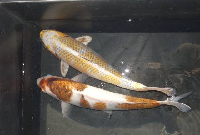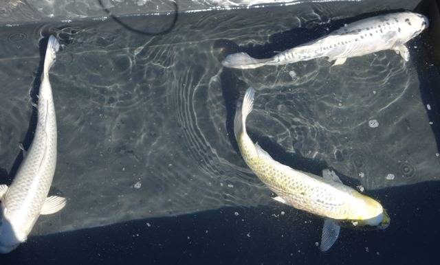 昨年の秋から冬にかけて購入した当歳(12~17㎝)も9か月で37~40㎝に成長してくれました。2週間の消毒も済んでめでたく庭池にデビュー、今のところ異常なし。先住鯉との混泳は犬の多頭飼いの始めより気を使います。2,3日はじっくり観察です。