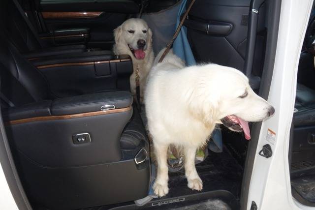 男の子達の入っているドッグルームのエアコンの冷えが悪くなってしまいました。去年も掃除をしてもらったのに、1年で故障まではしてなかったようで良かったです。凜は書斎のクレートへ一時避難。困ったのは北斗と愛斗の避難場所がありません。ということで私の車へ。ついでにゴミ出し、近所への配りもの、修理の終わった仮払い機など用事をまとめて済ましてきました。途中まわり道をしながら散歩でもとドライブしましたが、結局散歩できるような場所は無し。そのまま帰路に。帰ってきたらドッグルームは冷え冷えに......。ワンたちは何もわかってませんが、とりあえず好きなドライブをしただけでいいかな?