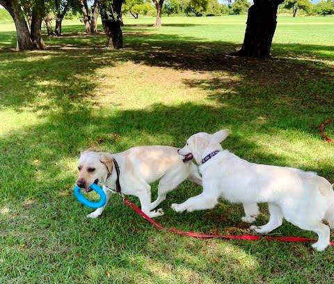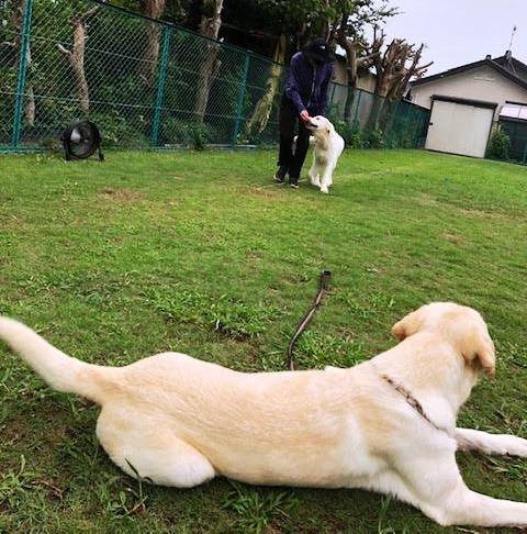 焼津のくるみちゃんはお迎えから9か月、先住犬のラブ兄ちゃんともすっかり仲良し、良いお手本になってくれていますね。トレーナーさんとの訓練も順調だそうです。遊ぶ時もラブ君大好き、多頭飼いの良さが出ていますね。