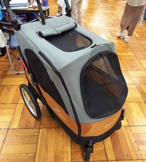 今日は浅草で「Ace&Ace」さんの展示会。初めて高速バス利用で行ってみました。電車に比べて時間はかかりましたが、ずっと座っていけたので高齢者には助かりました。まずは、ベビーの社会化散歩用のカート、バッグ散歩に加えて複数頭で散歩に行けます。ワンタッチで折りたためるので旅行や高齢犬にも使えそうですね。二つ目は今年あおむぎ君たちからお借りしたライフジャケット。来年はうちのドッグランにもインテックプールを置きたいので、お試し用にジャケットも一つお願いしました。その他、プール用のおもちゃも。ママは体作り用のフードをいろいろ相談して試供品をもらってきたようです。今回は水遊び用のおもちゃや知育玩具がの新製品が結構出ていました。