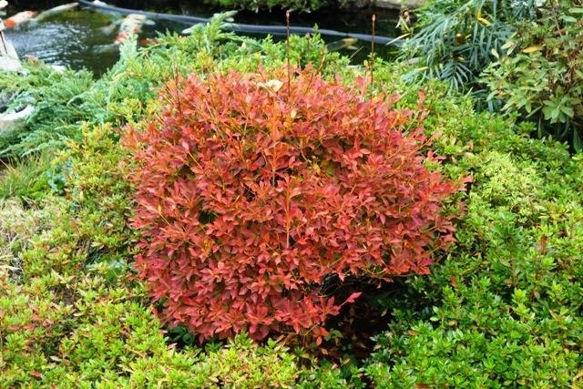一方、紅葉はというと、アオダモ、アオハダなどはもう散ってしまって、ドウダンツツジがそろそろ盛りというところですね。植えて5年目やっとここまで大きくなってくれました。紅葉の王様「モミジ」はというと、うちのモミジは例年遅くて今月末位から12月始めなんです。今年は夏の暑さでいつもより遅いかもしれません。日当たりのいい方のモミジが上の方からちょっと変わってきていました。ところが