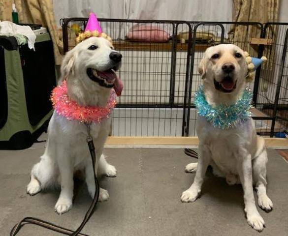 マグゴル6期生、焼津の胡桃ちゃん順調に成長して昨日で満1歳、おめでとうございます。おいしそうなケーキを前にお利口さんでマテができてますね。お迎えして10か月、あっという間でしたね。お散歩の時は会う人皆さんに可愛がってもらっているそうです。口角が上がって幸せそうです。先住犬のラブちゃんともすっかり仲良くなって、多頭飼いもうまくいって良かったです。訓練も覚えが良くて、訓練競技会にも挑戦するそうです。くるみちゃん頑張ってねぇ~。
