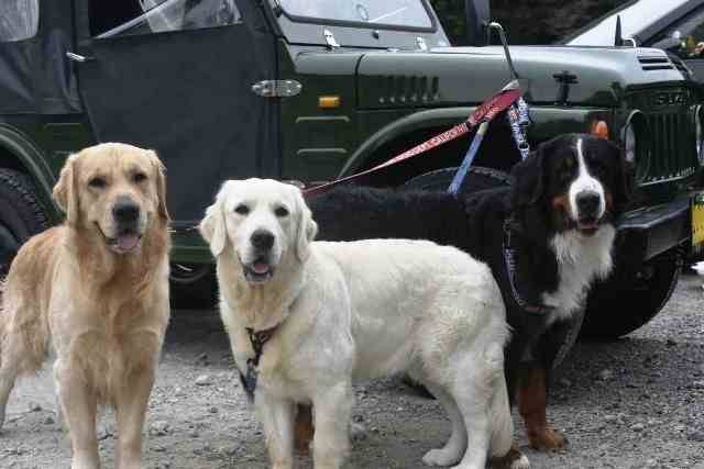 今日の画像は、桜パパにお願いして送ってもらったものです。ありがとうございました。画像②桜の犬舎「シェリーズゴールデン」さんの3頭、この後3頭で引っ張ってフェンダーミラーを破壊!パパ涙......。帰りはテープで補修、幻のジムニーも涙!大変でした。でも、桜ちゃんは一日楽しかったようで爆睡ですね。