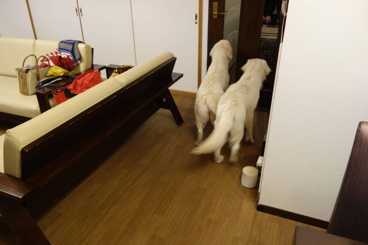 今年は犬舎出産「0」厳しい1年でした。もちろんいろいろ勉強になった年でもありましたが.....。というわけで今日からママとシェリー&凜で軽井沢に慰安旅行に来ています。まずは横川SAで溜まっていた釜めしの器を返却して、今日の夕飯の釜めしも購入して、一路久しぶりのアウトレットへ。シェリー&凜は初めての長距離ドライブ&お泊りでずっと興奮気味、車の中では一睡もしないでアウトレットでもずっと興奮していました。それでも犬好きの人がたくさん「可愛い」と寄ってきてくれて、2頭とも口角爆上がりで抱き付いていました。PVの部屋に入ってからも興奮冷めない2頭はずうっと歩き回って調査活動。ママがソファーに休んでいると凜は飛び乗って甘えています。ママが相手をしないと今度はシェリーにワンプロ仕掛けています。シェリーもリビングではさすがに激しく相手はしないで凛にやらせていました。シェリーも1歳8か月、ずいぶんお姉さんになりました。