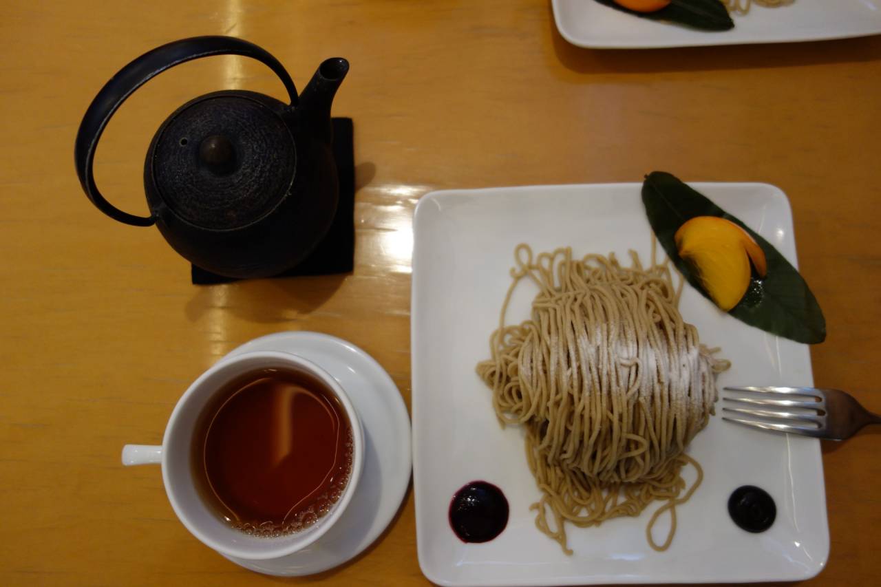 小布施と言えばやはり”栗”、ランチは栗おこわとそばのカルボナーラのセットおいしくいただきました。3時のスィーツは蔵カフェ「えんとつ」さんの”モンブラン朱雀”。大変おいしかったんですが、予想以上に量が多くてママと異口同音に「次は一個シェアでいいね」。ということで今日の夕飯はツルヤの簡単なもので十分。夕飯前に温泉で時間をつぶしてきま~す。