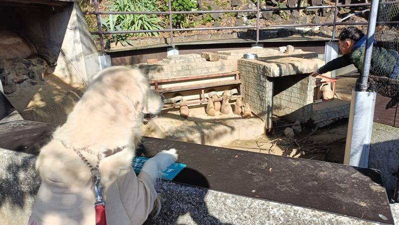 伊豆の動物園かな?お利口さんで見ていますね。インスタでは鳥のショーを見ていたけど、じっとできたのかなぁ?エマだったら絶対襲いかかっちゃうのでNGだね。画像②はプレーリードッグかな、お隣の人間の方が乗り出していてマナー悪いよね。やっぱり遊びたいと思ってるのかな?