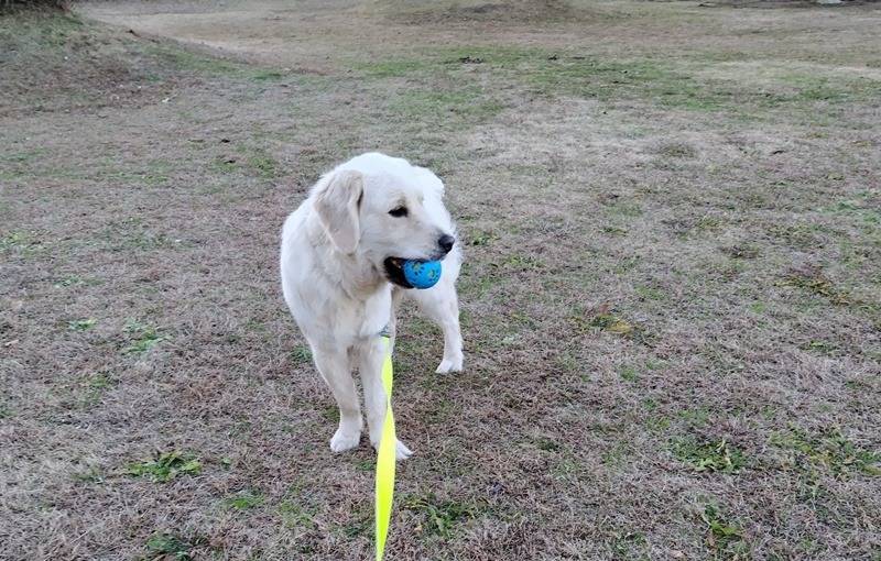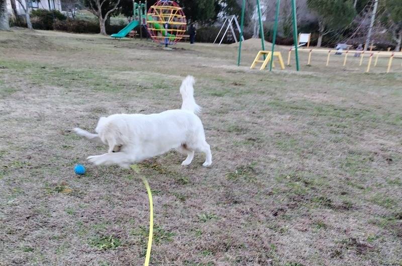 午後から郵便局に用事がったので、ついでにシェリーを連れて公園まで。久しぶりにロングリードでボール遊びをしたら、ちゃんとレトリーブも覚えてました。そのあと、川の方を一周散歩、ヒールウォークはまだまだ、ちょっと引っ張り気味。私がが頑張らないとという感じです。