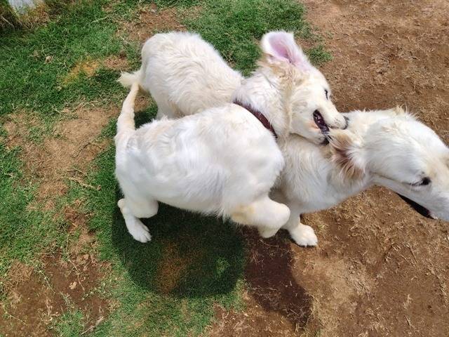 凜の炎症を抑える薬も飲み終わって、元気回復=寛解かな。それに合わせてドッグハウスの自分のクレートに戻しました。すると、トイレ出しの時、マノンやアリスにいじられ放題。特別扱いされて楽しんできたのかと思われているように、ワンプロ仕掛けられてドロドロ状態。凜はマノンのことが好きでよく甘えさせていたのでその反動もあるかな?凜本人が苦しんでいたことは、他の子たちには全く想像できないし、楽しい思いをしてきたとでも思われているんですかね。ママは見かねて時間を短縮して凜をクレートに入れています。犬の集団生活のルールや感覚は人間が想像するには限界がありますね。人間の価値観で判断して抑えたりするのではなく、ワンコたちを信じてまかせて様子を見守ることが重要なんですが、なかなか難しいところですね。
