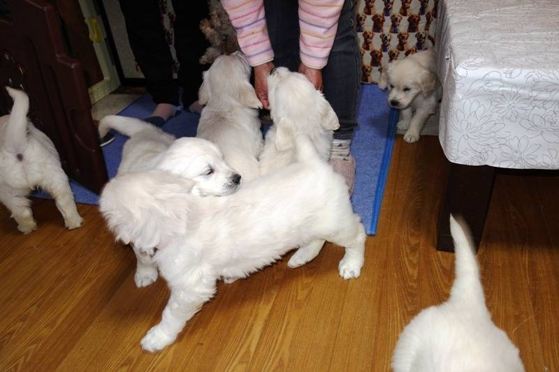 当犬舎と同じようにスィートコテージのコンセプトを受け継いで英国プラチナゴールデンレトリーバーのブリードを始めたsherie’s golden犬舎へ初めて訪問してきました。常陸大宮はゴルフで何度か近くまで行ったことがありましたが、下道2時間40分、結構かかりましたね。生む気満々と言われていたエルちゃんはしっかりママになっていましたよ。8頭のベビーもみんなスクスク成長してワチャワチャしていました。個性も大部出てきて兄弟で遊んだり、ママに甘えたり、私たちの匂いを積極的に嗅ぎに来たり、一人でおもちゃで遊んだり、順調に社会化期を過ごしているようで、環境への対応力はバッチリですね。トイプーのゆず君やトイプーのベビーたちとも一緒にじゃれ合ってました。犬舎に残す子も含めて7頭の行先が決まったそうです。最後の1頭は水色君(画像④)しっかりした男の子でしたよ。お迎え希望の方はご連絡ください。