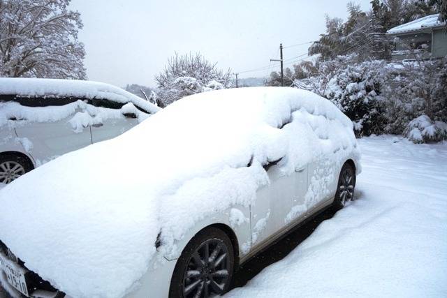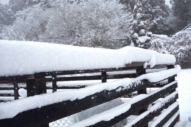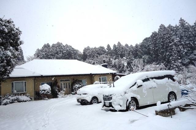 犬舎付近は昨日の午前中はチラチラ雪だったのが、夕方帰ってきたときには画像のような状況、気温も低いままで天気予報でも積雪が今日まで続くとのことで、心配していたが、朝起きたら、まさかの大雪。ドッグランの柵のトップや車の上は20っ㎝超え!ビックリですね。近くのバイパスは南側に林があり日陰なので朝から通行止め、パトカーも出て警備中。