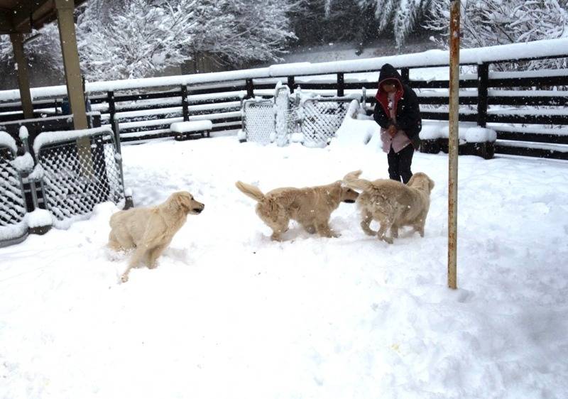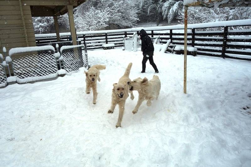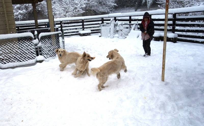 シェリー&マノン+凛の3頭は初めての大雪、朝から大喜びでランを駆け回り、興奮度マックス。犬らしいはしゃぎようです。見ているこちらも自然に顔がほころびますね。