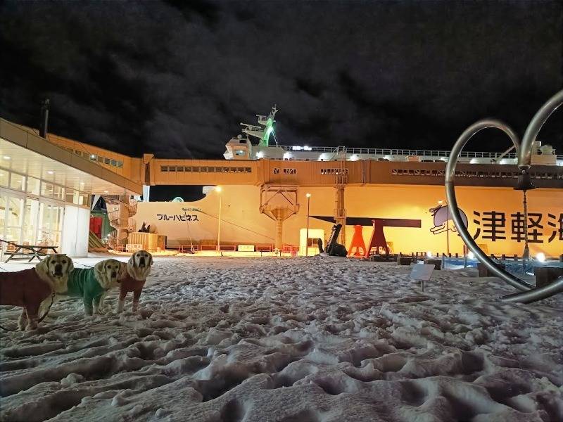 あおむぎ家からDMで北海道旅行の画像を送ってもらったので、ブログで紹介しながら大好きな北海道の旅行気分を味わわせていただきます。それにしても冬の北海道、スキーで何度か行きましたが、マイカーでわんこ連れは凄いですよね。青森まで行ってそこから津軽海峡フェリーで。わんこはバルコニー付きプライベートドッグルームで1室2頭まで、あおむぎ家は3頭だったので2部屋借りたそうです。3頭とも落ち着いた様子ですね。函館までは3時間40分、港も結構積もってますね。