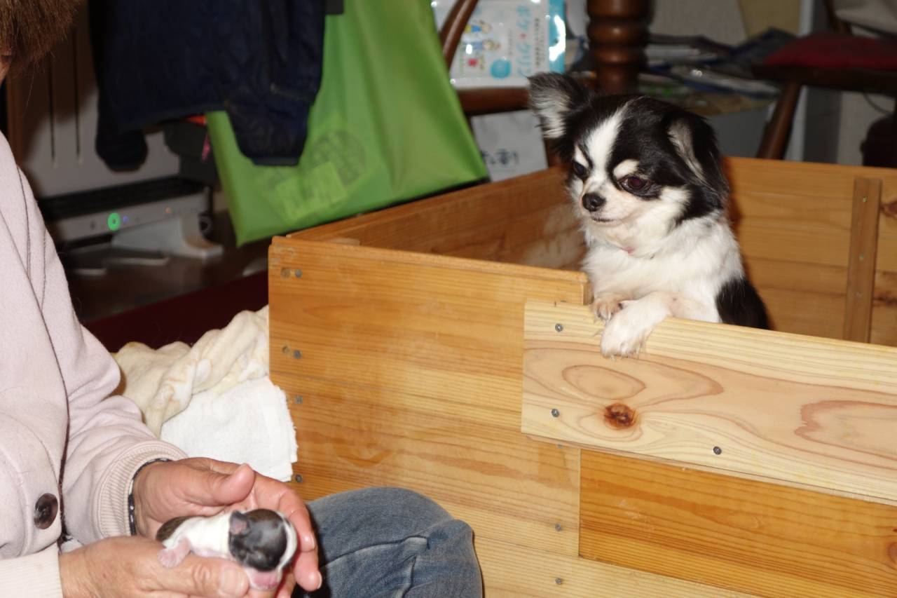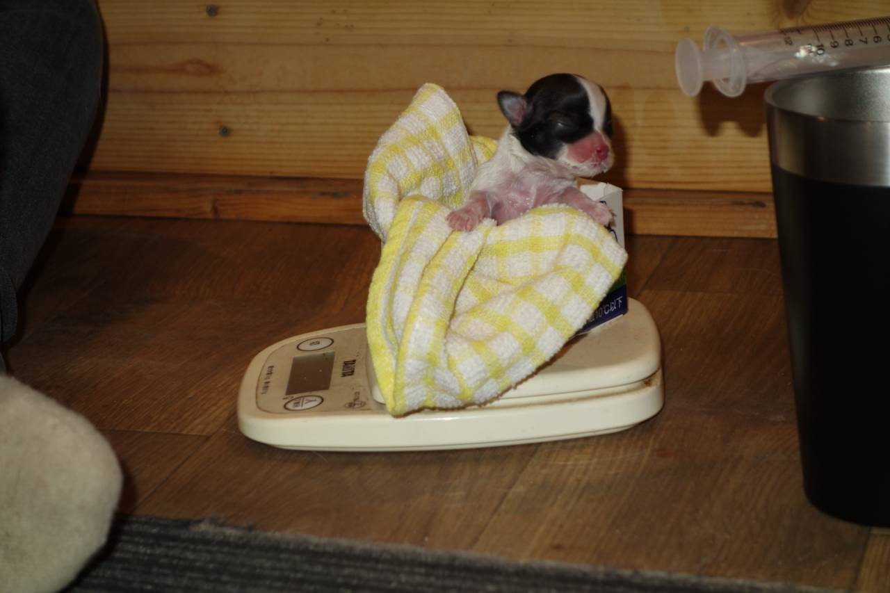 まゆベビーも2日目、まゆのおっぱいをどれだけ飲んでいるかわからないので、マグママはとりあえず人工乳もあげてます。自力で少しずつ飲んでますよ。体重も100gを超えてきました。ブラック&ホワイトですが、まゆママに比べてちょっとホワイトの割合が多いです。でもなんと背中にミッキーマウスがいましたよ。みんなに幸せを運んできてくれたのかな?授乳中もまゆはずう~とクンクン啼いてベビーを心配しています。
