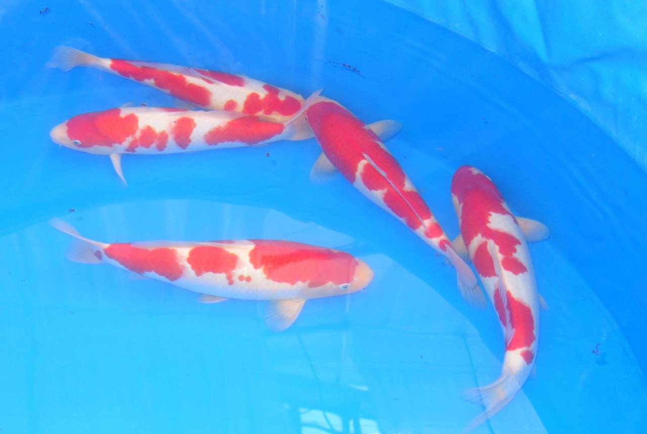 品評会の二日目は恒例の会員の勉強会「実物研修会」。会場のタニ養魚場さんから5尾の錦鯉(今回は3歳紅白)を用意してもらって、それぞれが1位から5位までの順位を決めるものです。後で本部審査員の方から審査員の皆さんの結果を示してもらって、解説、質疑応答で鯉の見極める力を向上させるという研修です。”愛隣会は鯉の販売はしない”という愛好家の集まる団体なので、「審査員の能力」が高く評価され、海外の品評会からも招聘されています。私も初めて参加したときには全く分かりませんでしたが、回を重ねたおかげで今回は1~3位は当たりました。だんだん面白くなってきましたね。この眼力を高めると購入の時にも役に立つんです。