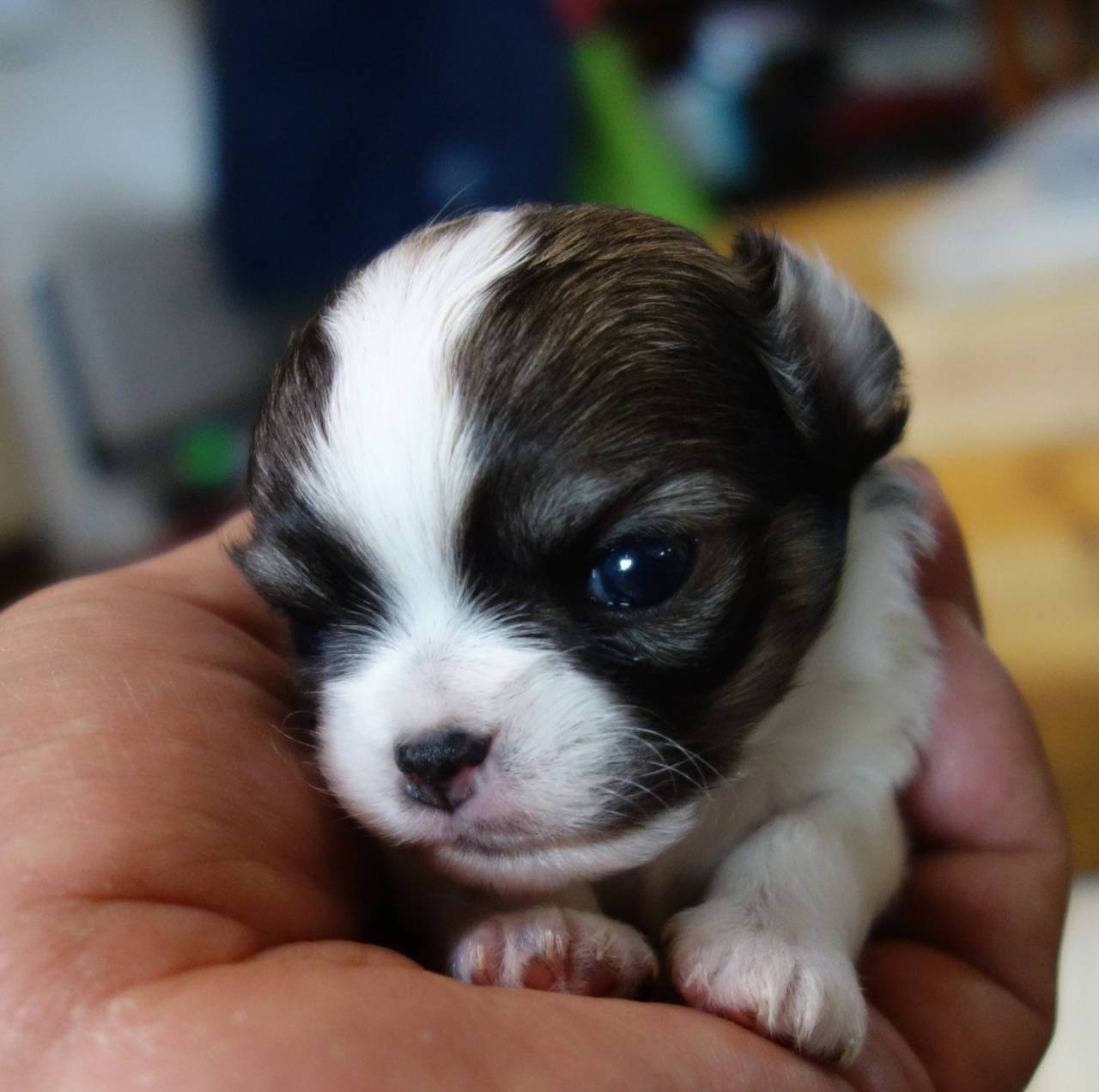 マグチワ・まゆベビーももうすぐ3週齢、本日の体重は370gになりましたよ。最近は母乳だけです。生まれた時はブラックに見えましたが、だんだんチョコになってきました。チョコ&ホワイトですね。目も開いてますます可愛いくなってきましたよ。
