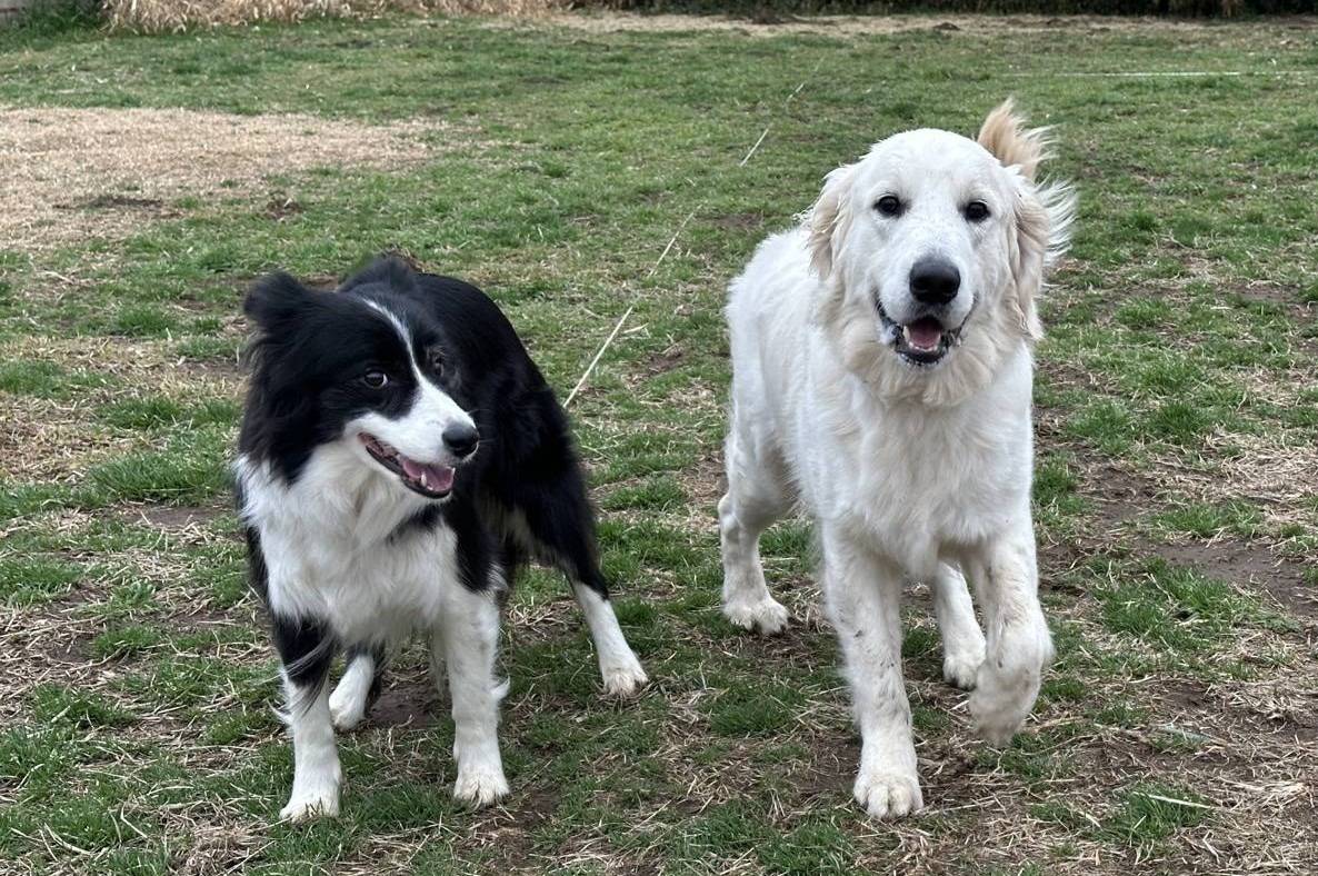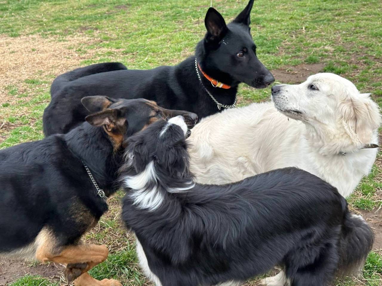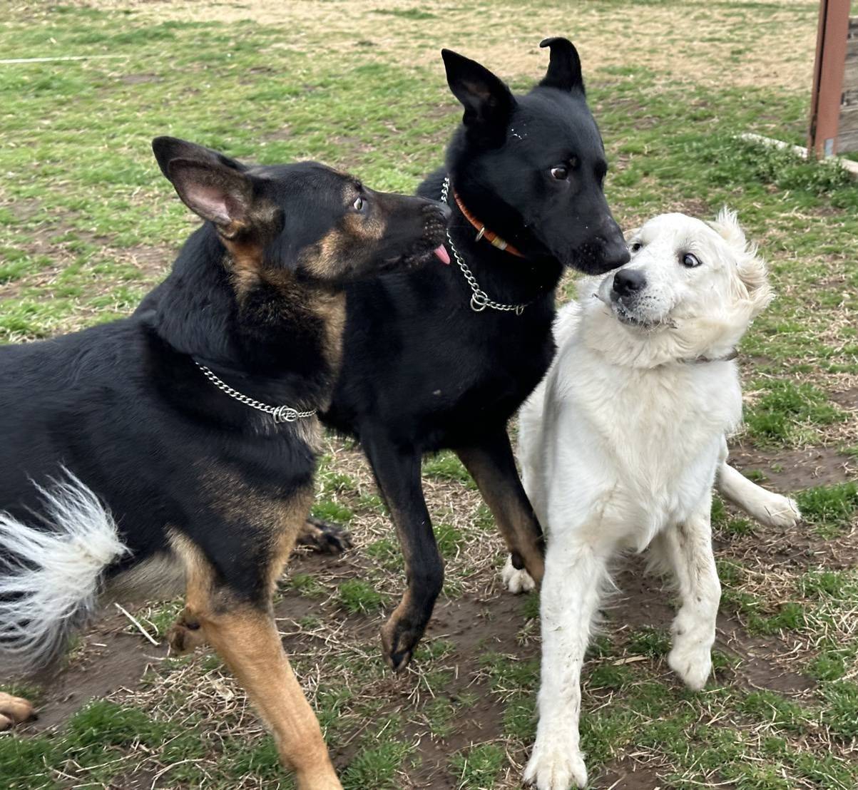 おもち君はトレーナーさんのところにいつもの預かり保育だったそうです。ボーダーちゃんとは親友という感じのショットですね。シェパードとも遊べるようになったなんて、おもち君すごい成長ですね。うちの子たちもマグママと一緒にスィートさんで毎週訓練を受けていた時は、訓練士さんの連れてくるシェパードたちと対等に遊んでいたのでこんな感じでした。信頼できるトレーナーさんのもとで定期的にこういう経験ができることはおもち君にとって社会が広がるのでいいですね。おもち君はこの日帰宅後パパママと触れ合いながらサークルで爆睡だったそうです。