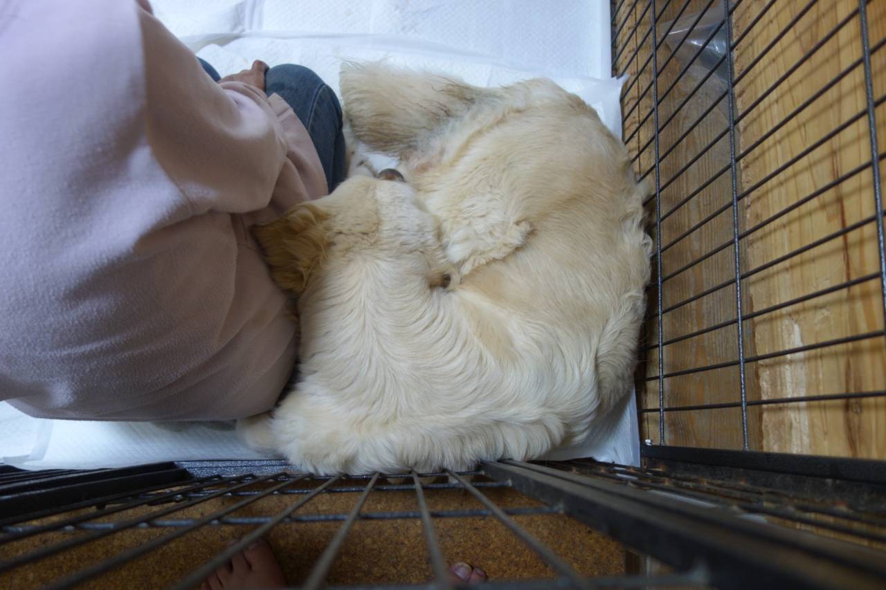今朝方、午前3時ごろからアリスの陣痛が始まって1時間、破水もあったけどなかなか出てこないので救急病院へ電話。「陣痛が始まって3時間位かかることもある」という話をしていたら、アリスがいきみ始めて直後に1頭目が出てきてくれました。「クゥーン」と啼いてくれました。時計を見たら4:30、女の子でした。4:50に女の子、5:20男の子、続けて5:30女の子、6:00男の子、アリスのトイレをはさんで7:15に女の子、6頭まで無事に出産、後の子はどうしても時間がかかりますね。画像は6頭出産した後の様子です。時々歩き回っていきんだり、オシモを舐めたりしているのでまだ入っている感じですね。レントゲンでは7頭写っていたので、もう少し見守りましょう。