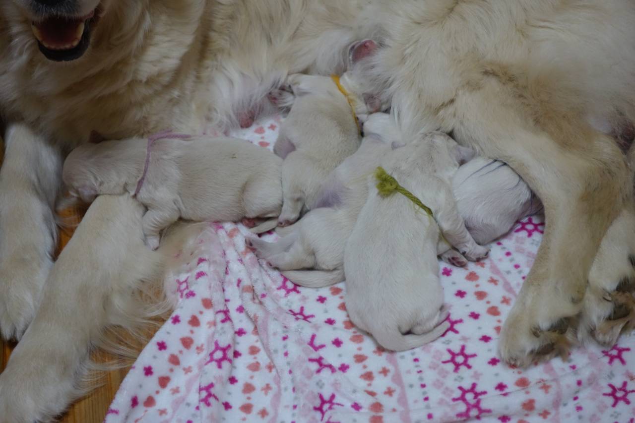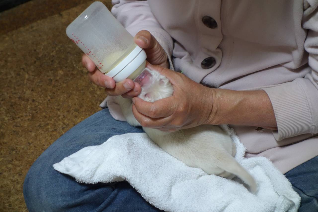アリスベビーは6頭なのでおっぱいの数も十分、アリスの母乳も刺激されてだいぶ出るようになってきているようです。それでもおっぱいだけでは足らないようなので、マグママが人工乳をあげています。みんなお腹ポンポンになってママに引っ付いて寝てます。