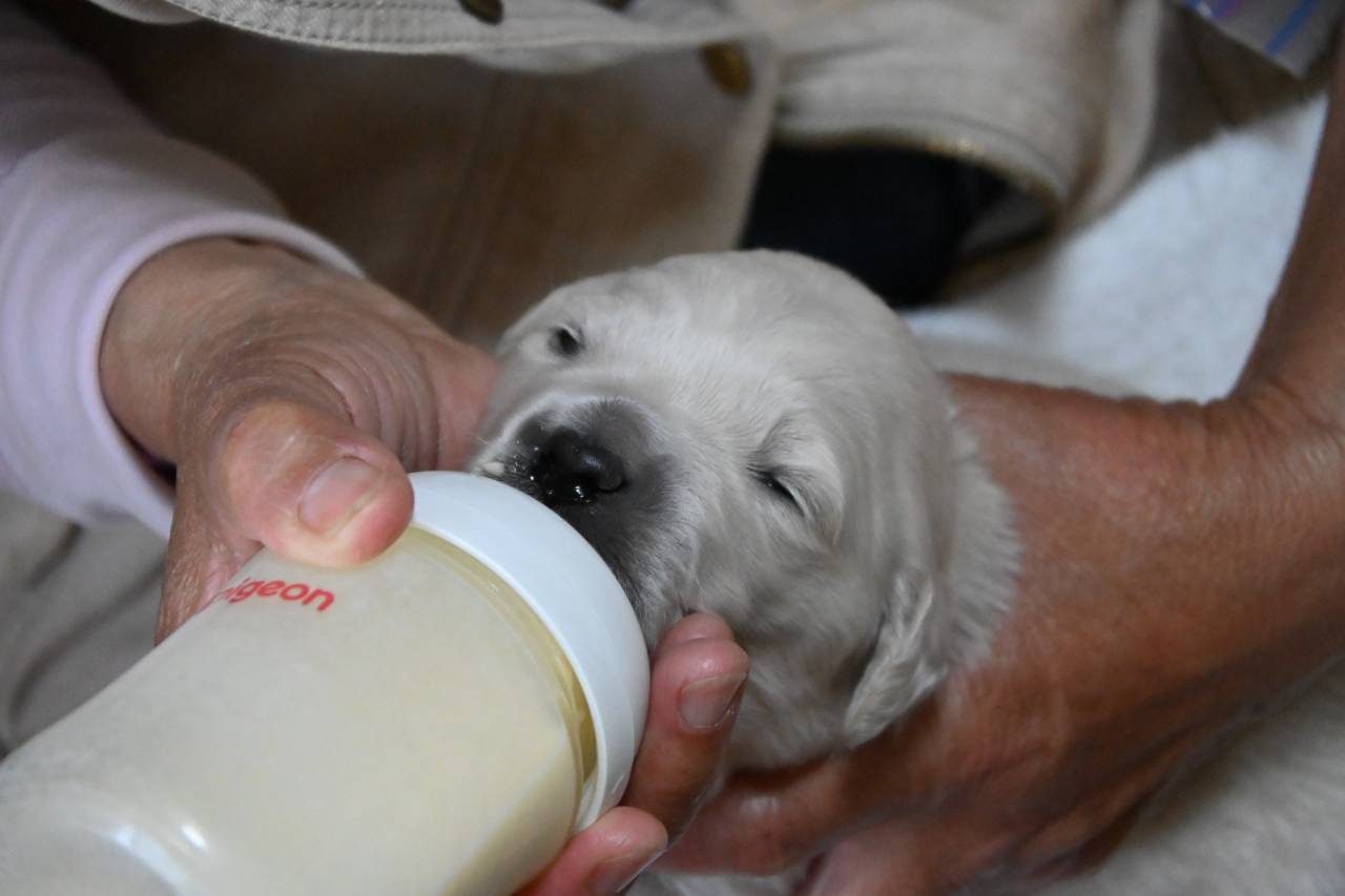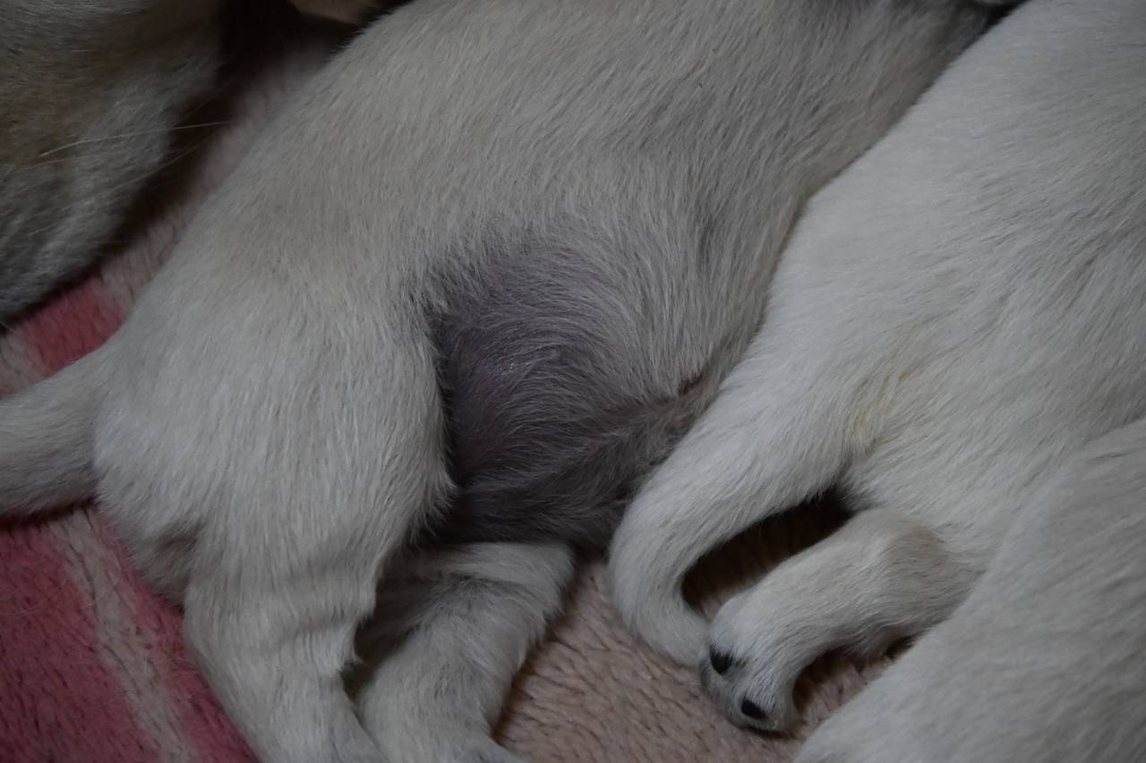 可愛さも増してきましたよ。6頭なので母乳も十分、バランスの取れた人工乳と併用で栄養もばっちり、順調に体重も増加して1.1~1.4kgになりました。母乳大好きなブルー君も1140gあるので心配ないですね。鼻も黒さが増して、色素の濃い子はお腹も黒くなってきましたよ。這い這いもまだお腹をズリズリしながらですが移動範囲も広くなってきています。次は前足が伸びての這い這い、四足歩行.....etc。お迎えまでの日々の変化はブリーダー特権なので楽しませてもらいます。