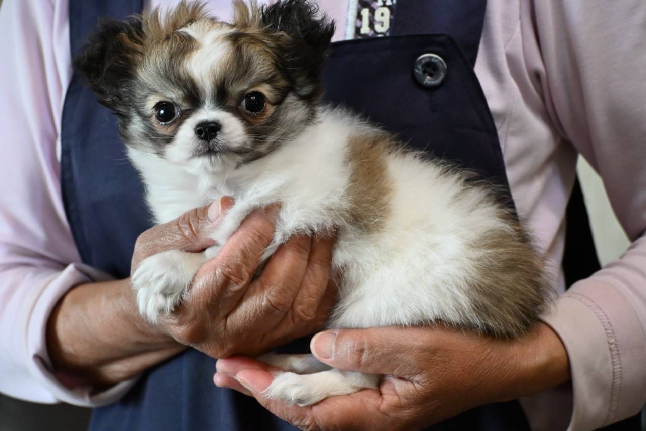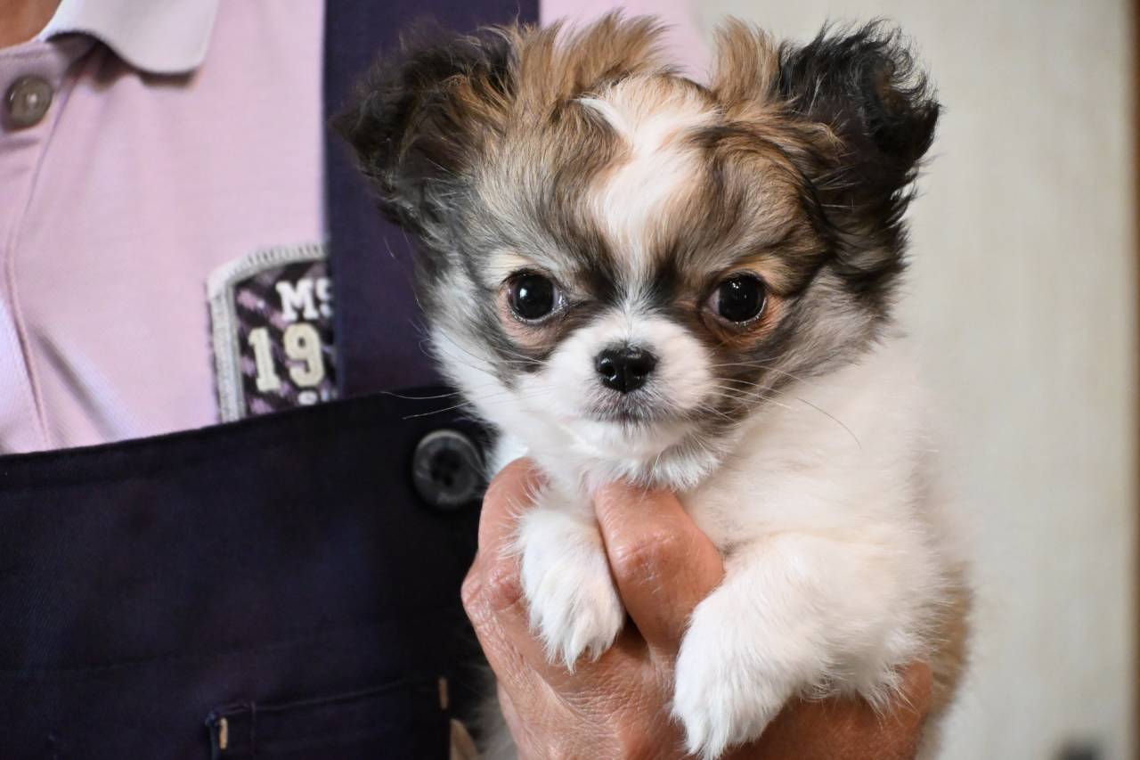 そういうわけで、まずは当犬舎が登録している販売サイト(実はマグゴル1期生の男の子たちは予約がなかったので、こちらでのご縁が始まりだったんです。)に登録しました。価格は悩んだ末30万円、やはりパパの「エクセル」は世界一のチワワを産出している三重の”Bramver’s(ブランバーズ)”(北斗・セイラ・アリスのお迎えをサポートしてくれた門脇先生の犬舎)の出身という血統の素晴らしさとパーティカラーという希少性、意思の強そうな瞳と表情から設定しました。チワワの場合は特に犬質が良ければ、コートや尾の成長など外見が決まってくるまで数か月かかるので、しっかりマナーも入れて、チワワ育てを楽しみながら気に入ってくださる方を待ちたいと思います。