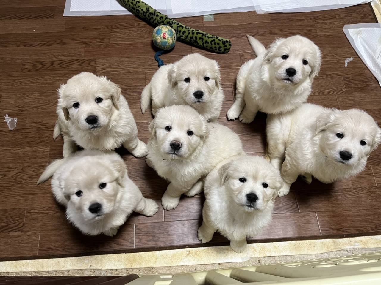 常陸大宮のシェリーズゴールデン犬舎の桜(マグゴル6期)のベビー7頭です。みんなお迎え先が決まったそうです。おめでとうございます。それにしてもみんな粒ぞろいですね。北斗と桜の良さをみんな受け継いでいます。前回は北斗の娘のエルちゃん、桜は北斗とアリスの娘なのでこの7頭は孫、アリスにとっては初孫です。スィートコテージのアルゴ&フィビ、マグノリアの北斗&アリスの良血統を引き継いだ子たちが英ゴルファンにお迎えされていくのはうれしい限りです。見学希望や予約も増えているそうですよ。今回もシェリーズさんではお迎えにあたって新しいオーナーさんとのドラマがあったようです。(詳細はHPのブログをご覧ください。)ワンコを通じて生まれたご縁がブリーダーにとっての幸せと達成感・モチベーションにつながりますね。そのためには、ラインブリード(健全な交配)を守るための自家産の交配計画がポイントなんです。その点、当犬舎やシェリーズさんは西村さんの実績と信頼関係に裏付けられた人間関係に支えられています。アルゴと交配した八ヶ岳のブランカちゃんももうすぐ予定日だそうです。6月初旬には西村さんとベビーを見に行かせてもらう予定です。八ヶ岳のブリーダーさんのHPも読ませてもらったんですが、長野からスィートさんへ交配をお願いするだけあって、しっかりしたコンセプトをもって血統に拘って努力されていることがわかります。お会いするのが楽しみです。